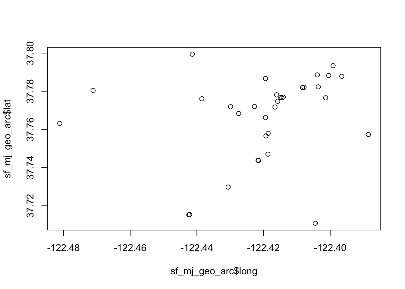 plot(sf_mj_geo_arc$long, sf_mj_geo_arc$lat)