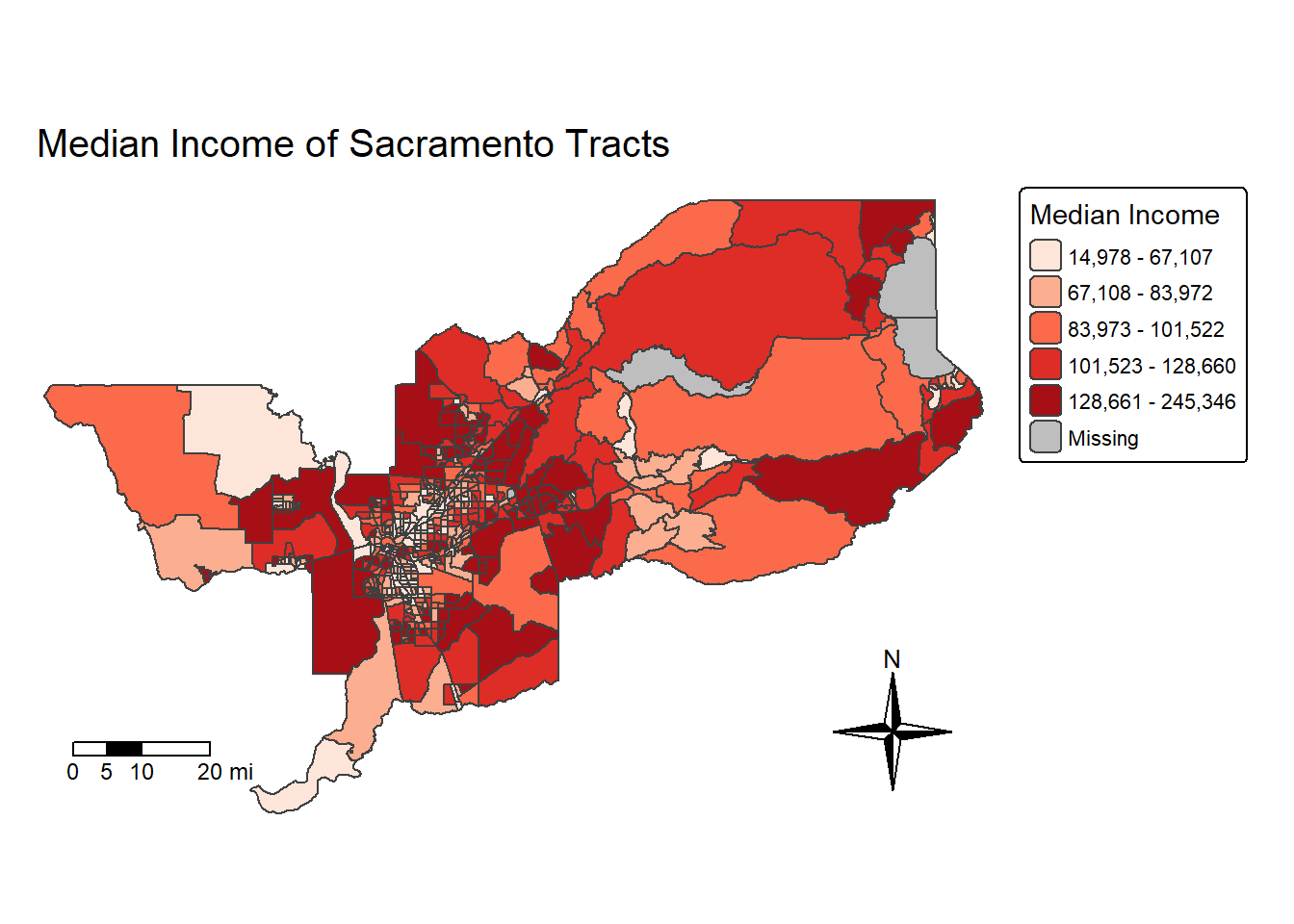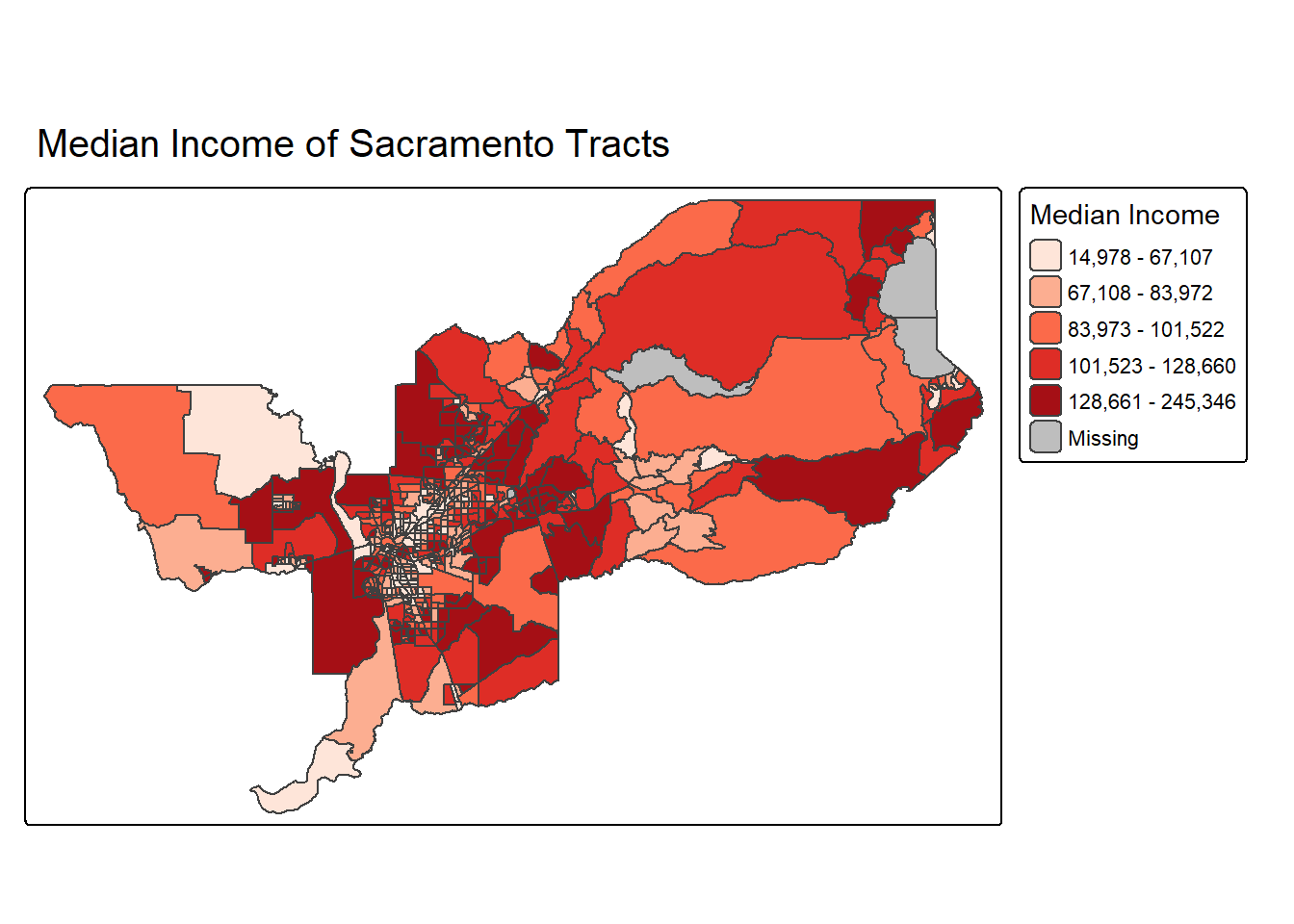 features (from left to right, for example, California tracts go from a
