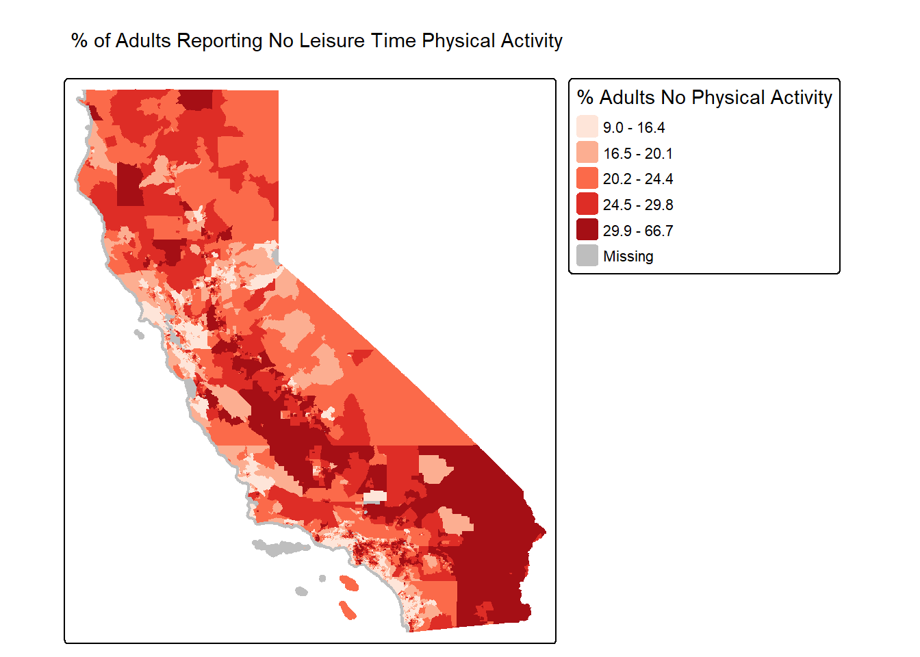 tm_title_out(text = "% of Adults Reporting No Leisure Time Physical Activity")